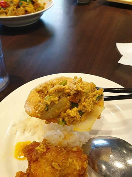 一點點辣度的咖哩加椰奶料理,整個就是超級下飯的![]()