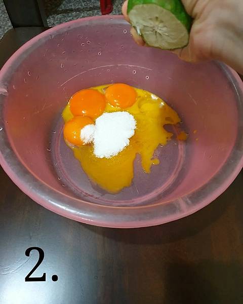 蛋黃鍋-蛋黃+白砂糖20G+幾滴檸檬汁MIX 打發